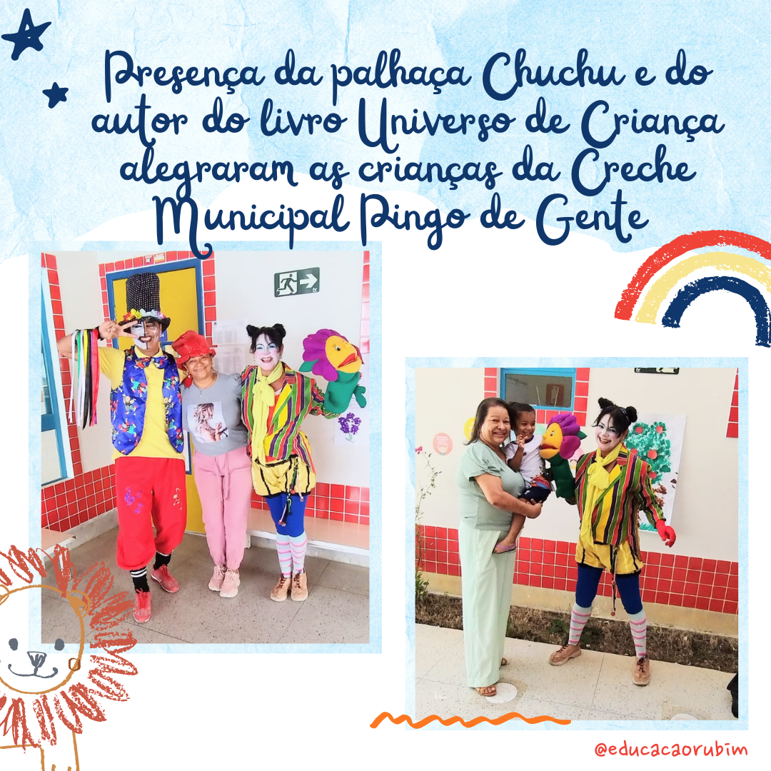 Foi com grande alegria e satisfação que o escritor e educador Rubinense Eldvin Mendes, se apresentou para as crianças da Creche Municipal Pingo de Gente, em comemoração ao seu dia. A escola também recebeu a contadora de história Clébia Vargas.